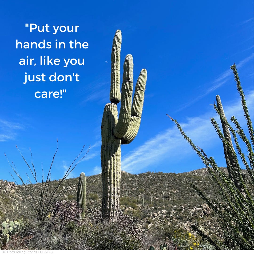 Some large tree-like plants, like this saguaro, try to dance, but they only have one real move and it’s a little bit dated: