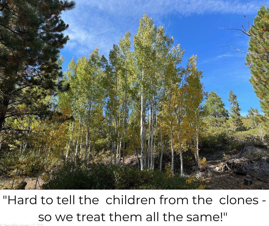 And with some trees, what looks like caring for their young, might be more of a form of ‘self-love’ - when their young are mostly clones, like these Aspen here.